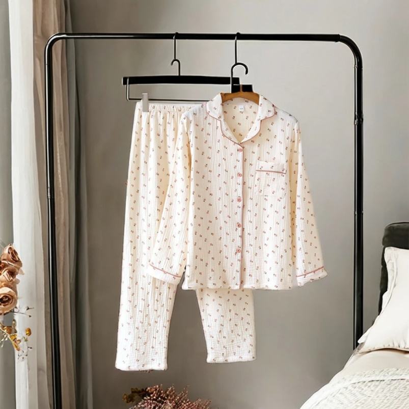 High Quality Wholesale Women's 2-Piece Cotton Long Sleeve Pajamas Set Polka Dot Printed Autumn Loungewear for Sleep