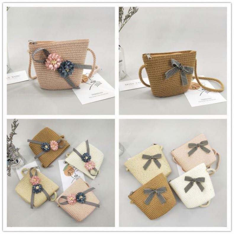 High Quality Wide Brim Straw Tote Summer Beach Hat With Matching Straw Hat and Bag Set