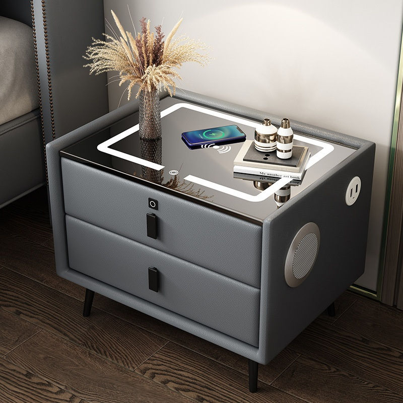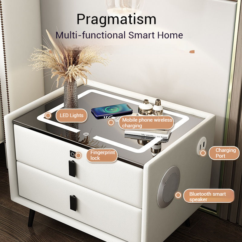 High Quality Wireless Charging Bluetooth Speaker Led Lamp Fingerprint Lock Smart Nightstand For Luxury Hotel Bedroom Furniture
