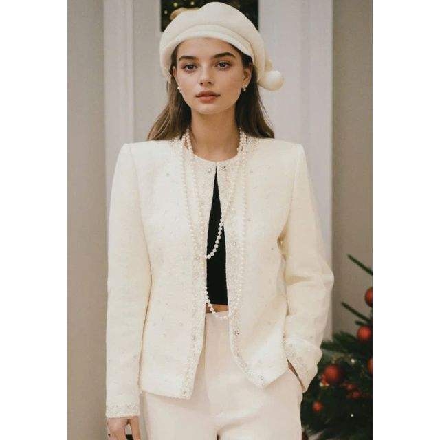 Olivia Tweed Jacket for Women Elegant ODM Service High Quality Woolen Fabric Woven Weave for Autumn and Winter