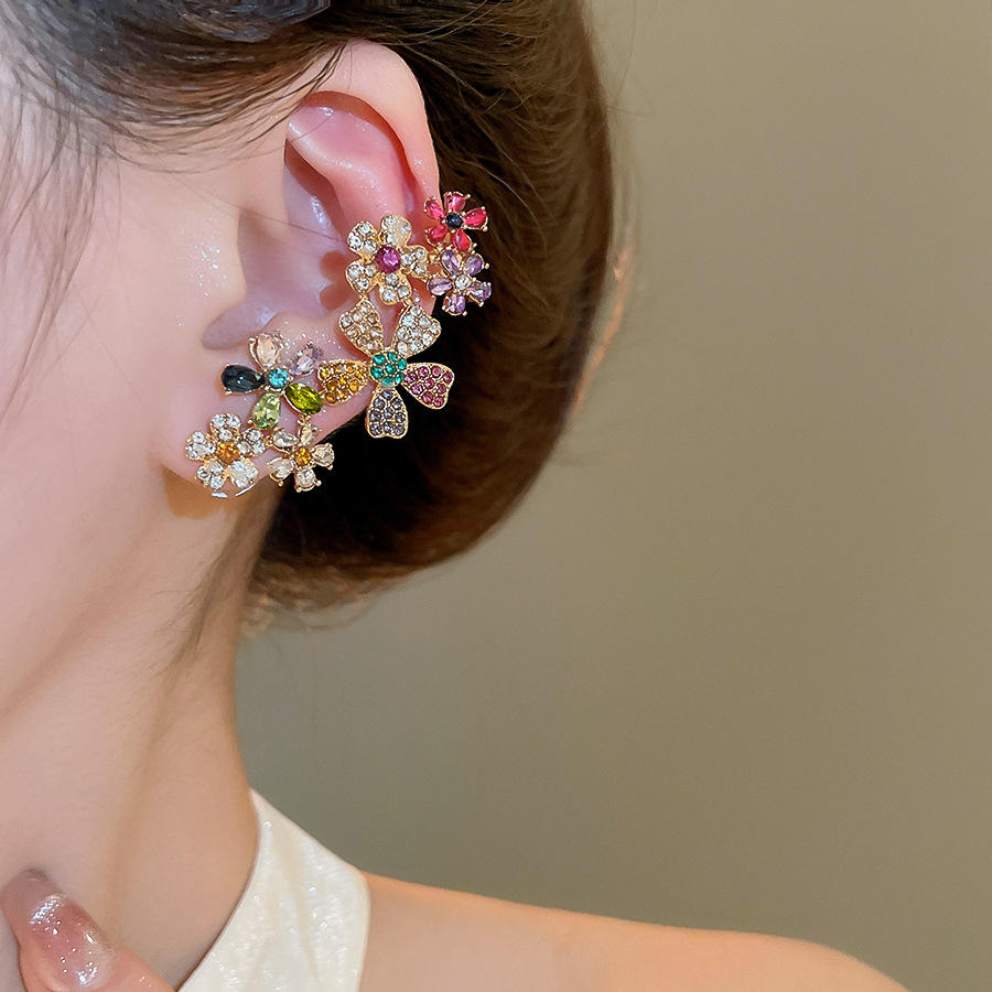 High Quality Women Colorful Multi-flower Shaped 18k Rhinestone Flower Earrings Ear Bone Cuff Earrings