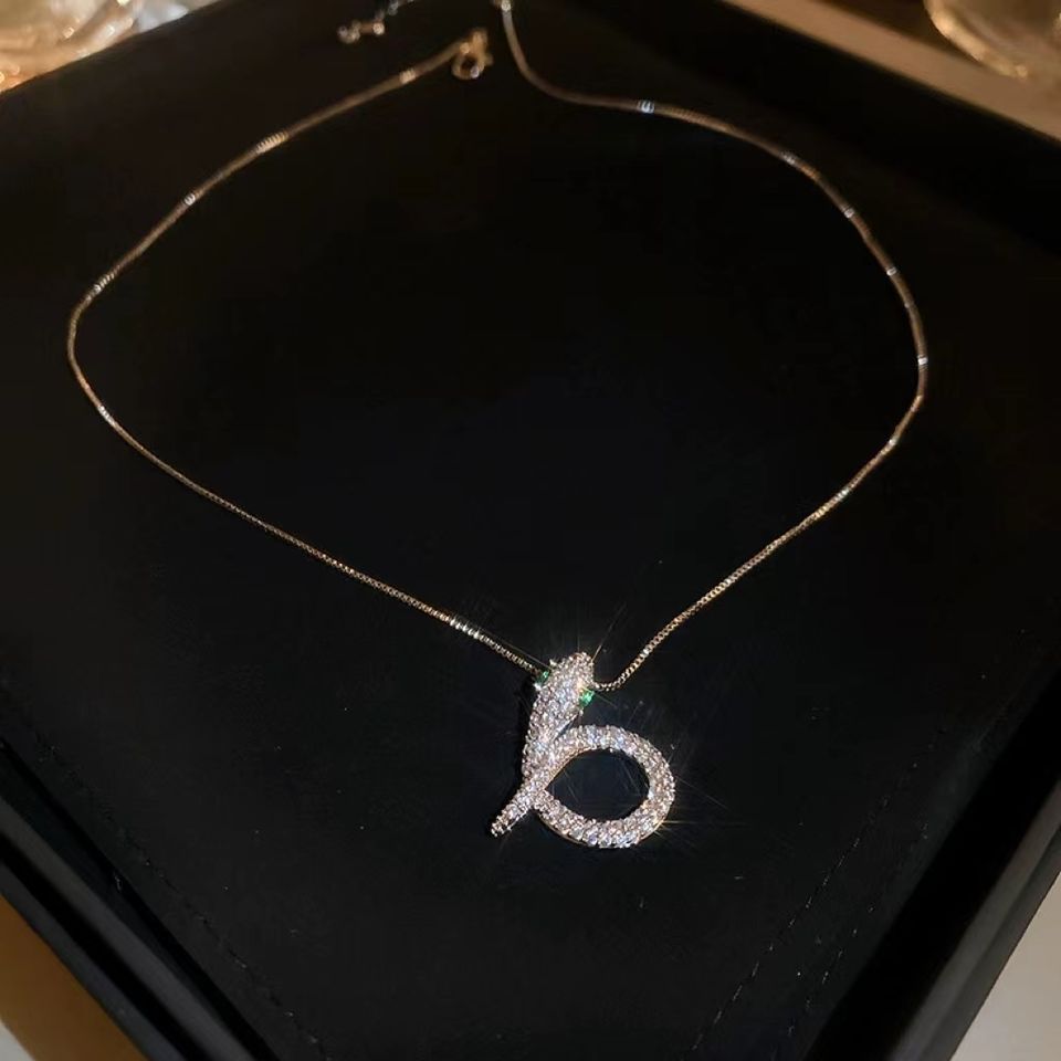 High Quality Women Fashion Chain Choker Rhinestone Zircon Necklace Earrings Studs Snake Shaped Jewelry Set
