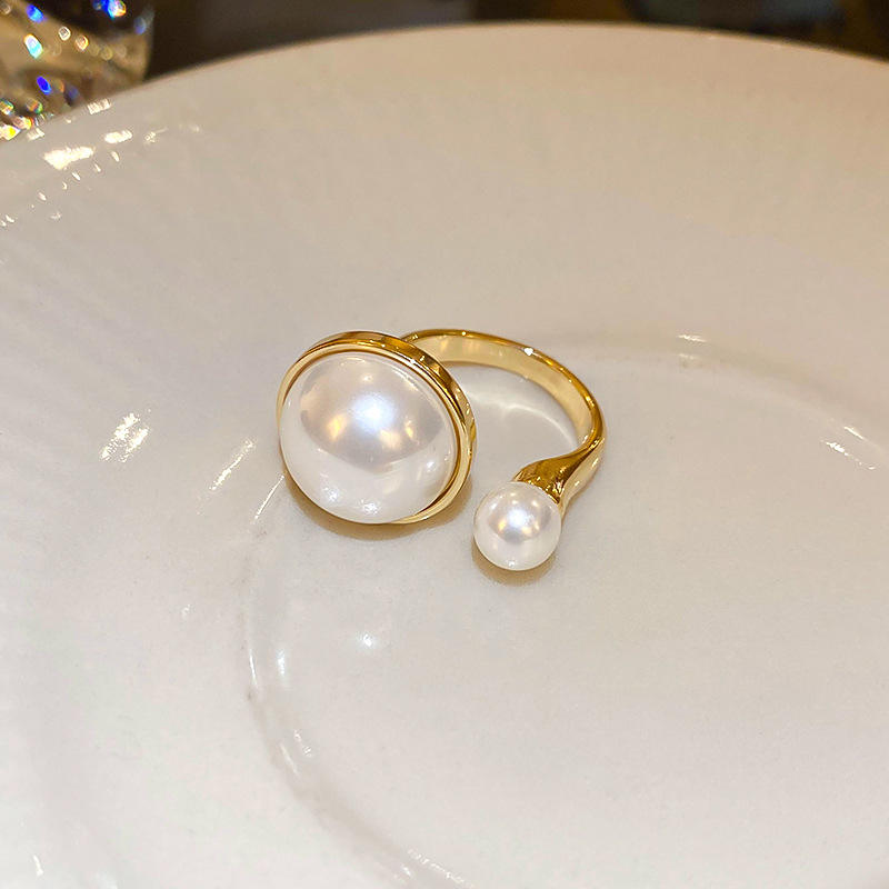 High Quality Women Jewelry Gold Plated Finger Rings Fadeless Open Adjustable Pearl Rings