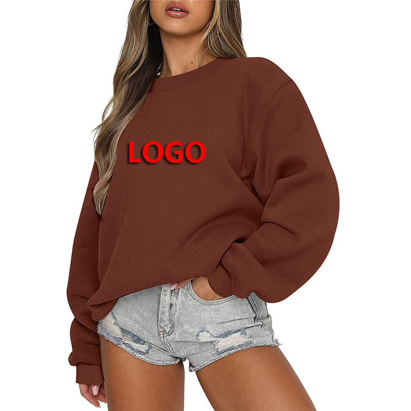 High Quality Women Winter Casual Streetwear Drop Shoulder Cotton Fleece Oversized Sweatshirt Front Logo Customizable Wholesale