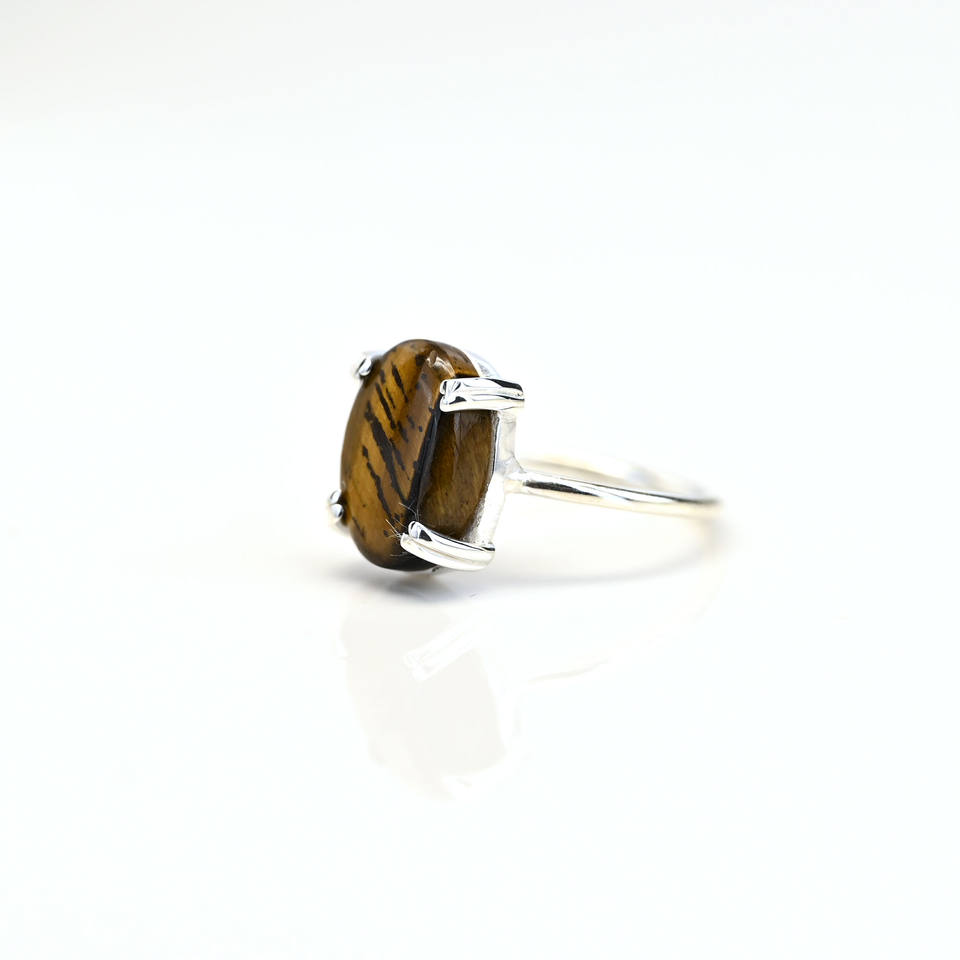 925 Sterling Silver Oval Tiger Eye Gemstone Ring