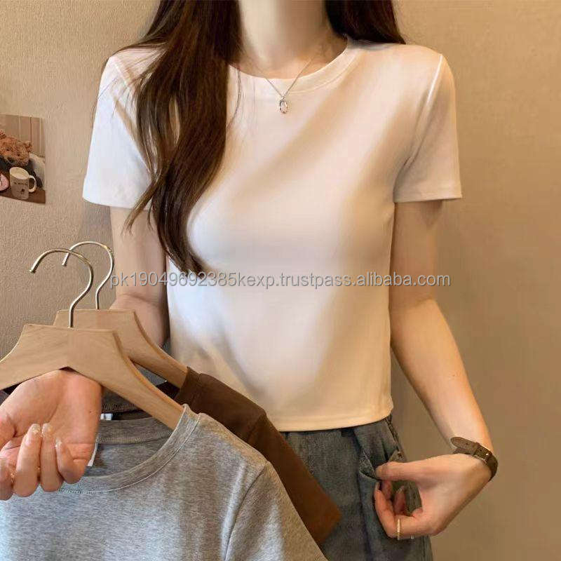 High Quality Women's Casual Fashion Short Style T-shirt Wrinkle-resistant Knitted One-piece Shirt Breathable Solid Color T-shirt