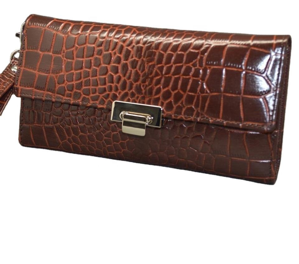 High Quality Women's Designer Leather Wallet with RFID Long Trifold Credit Card Holder Zipper Closure and Polyester Lining