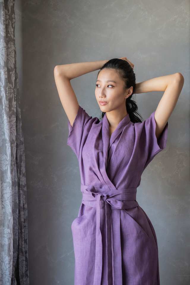 High Quality Women's Dress Loose Casual V-neck Belt One Piece Cotton Short Sleeves 100% Linen Natural New Styles OEM ODM