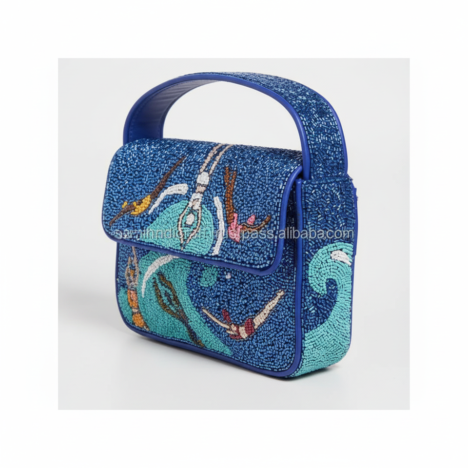 High Quality Women's Embroidery Handbag Multi-Color Seed Bead Beaded Bag for Evening Party Events Zipper Closure Large Fashion