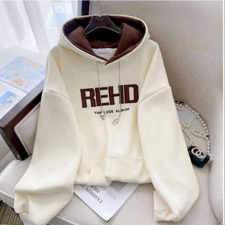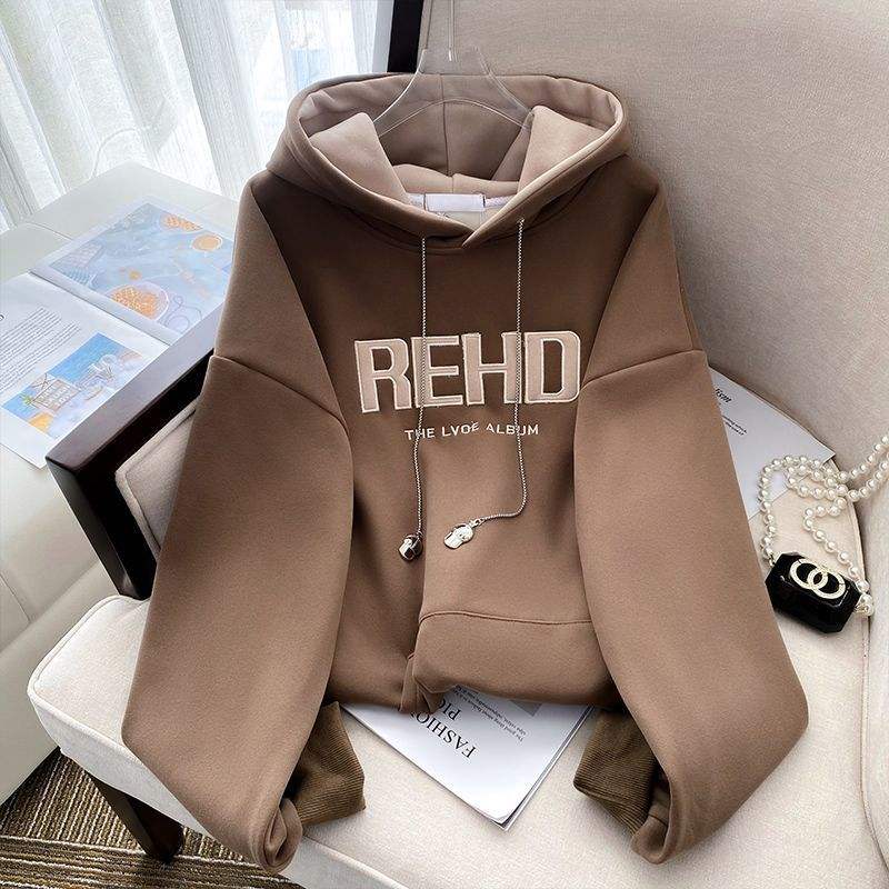 High Quality Women's Embroidery Hooded Knitted 100% Cotton Garment Dyed Anti-Shrink Pullover Hoodie for Autumn Plus Size