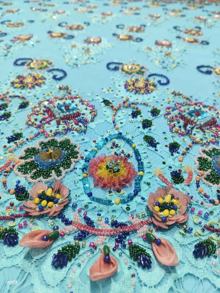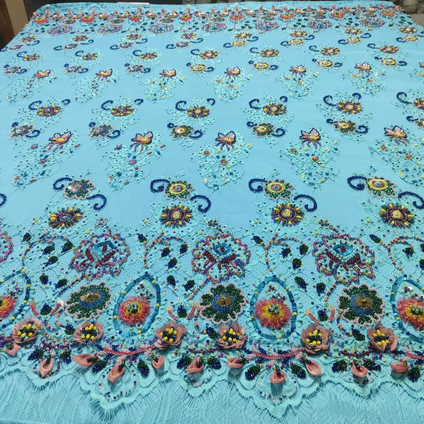 High Quality Women's Fashion Garments Hand Beaded Fabric with High Quality Beads & Rhinestones Designed