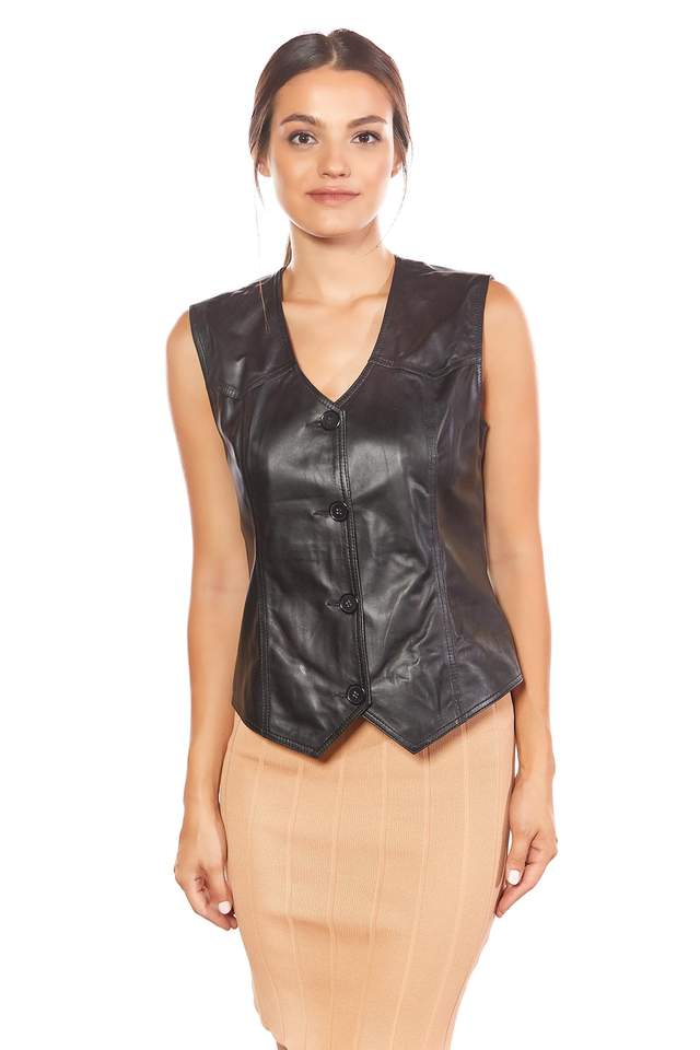 High Quality Women's Genuine Leather Vest Faux Fur Trim Plus Size Customizable Sizes Logo-Moto Biker Style Outerwear