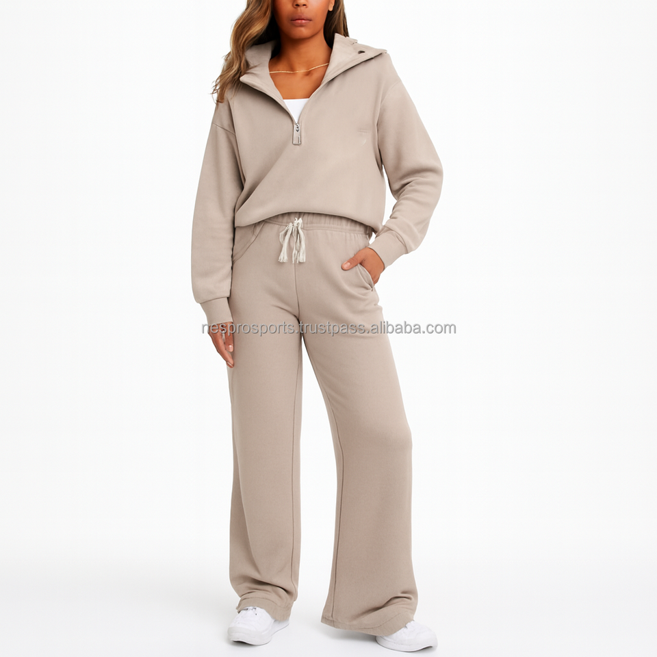 High Quality Women’s Jogger Set – Soft Fleece Zip-Up Hoodie and Sweatpants with Custom Branding Options, Ideal for Streetwear and Athleisure