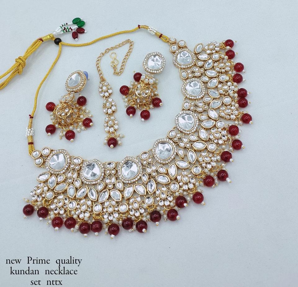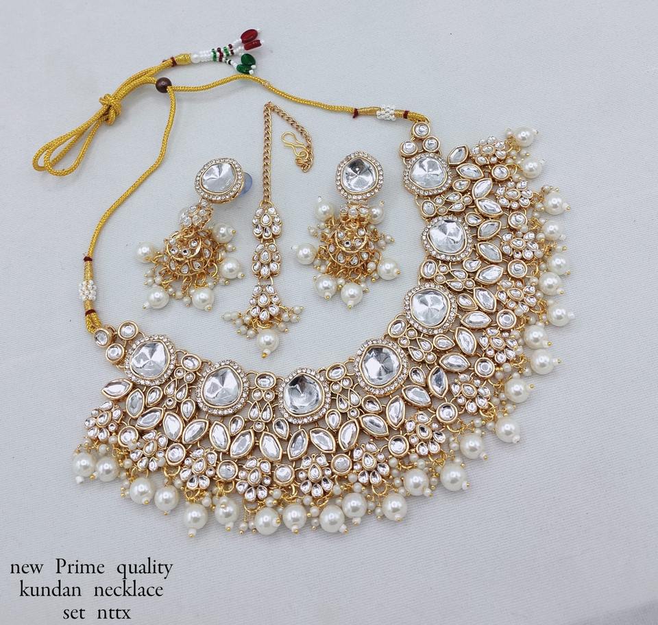Products Name:Fancy Collection Gold Plated Kundan & Pearl Necklace Set