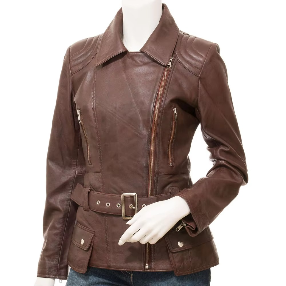 High Quality Women's Leather Jacket Solid Color Pattern with Breathable Feature Stand Collar Raw Processing Fashion for Autumn