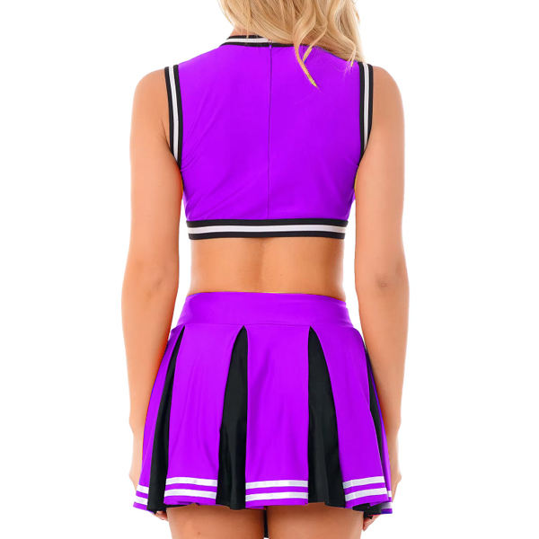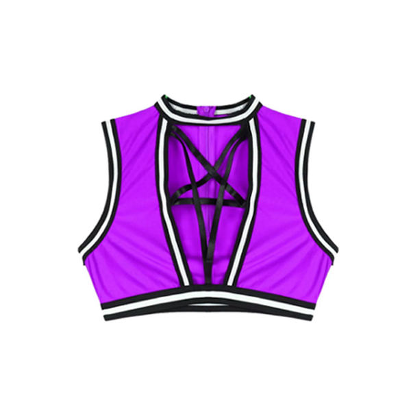 High Quality Women's Sexy lingerie Cheerleading Uniform Sleeveless Top with Pleated Striped Mini Skirt for Dance Performances