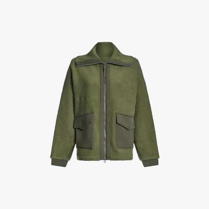 High-Quality Women's Sherpa Zip-Up Olive Jacket Perfect for Everyday Wear and Cold Weather