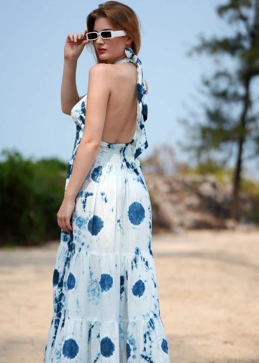 High Quality Women's Sleeveless Summer Beach Dress Fashionable Seaside Flowy Design Perfect Vacation Outfit Unique Pattern Back
