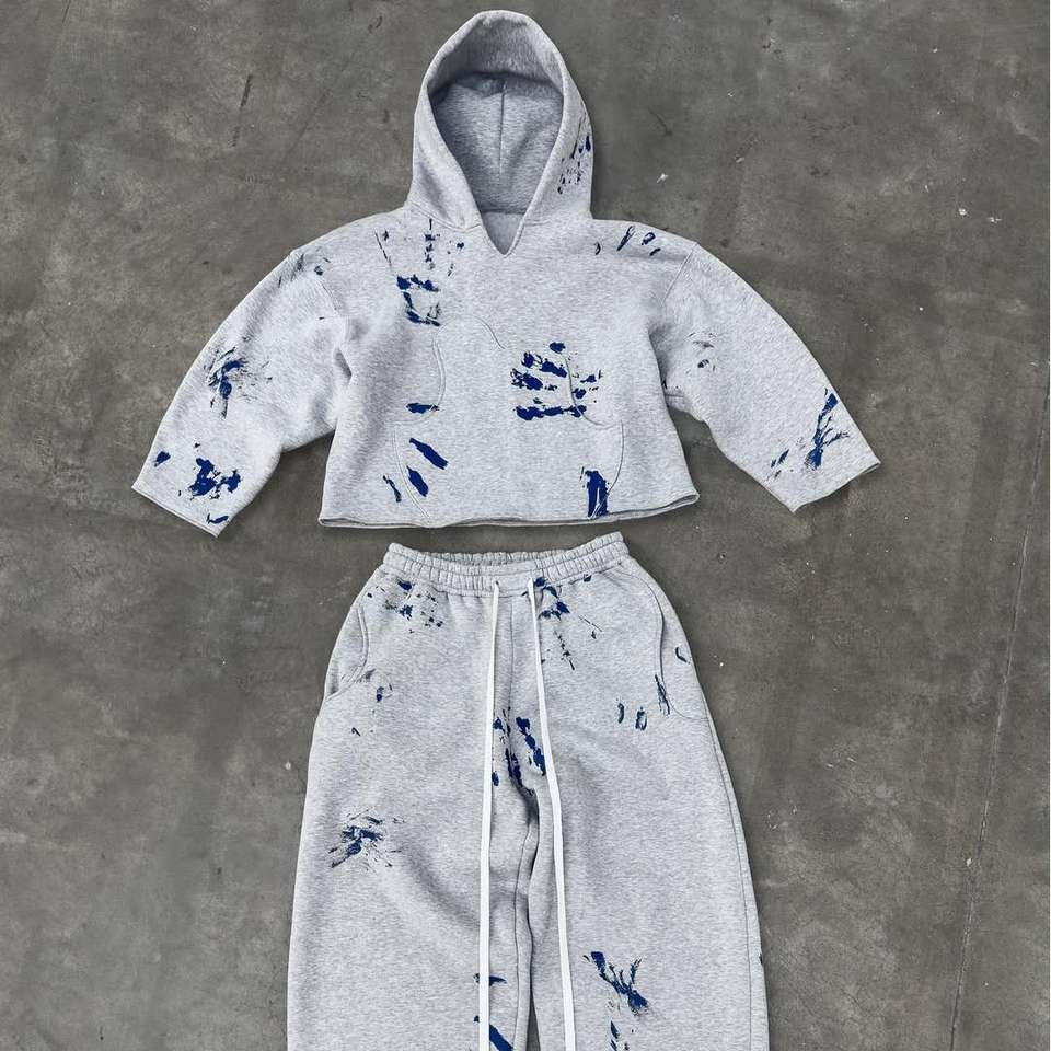 High Quality Women's Summer Autumn Casual Sports Wear Crop Hoodie Wide Leg Pants Tracksuit Breathable Cotton Terry Custom Print