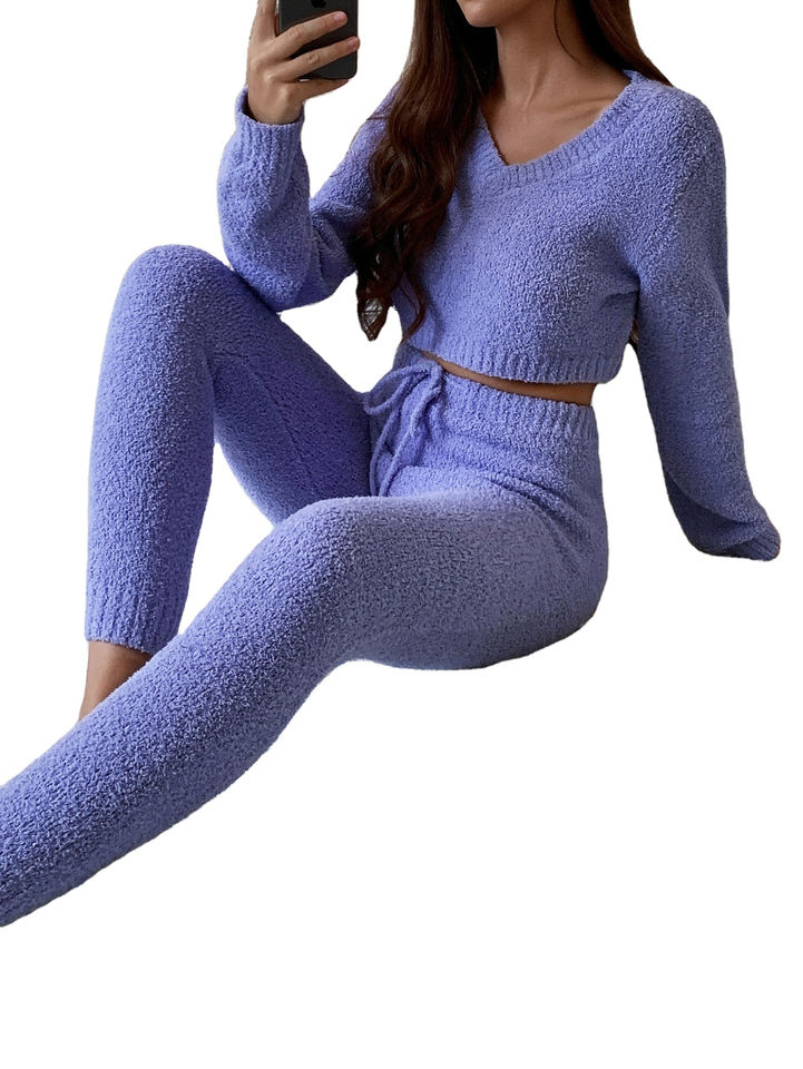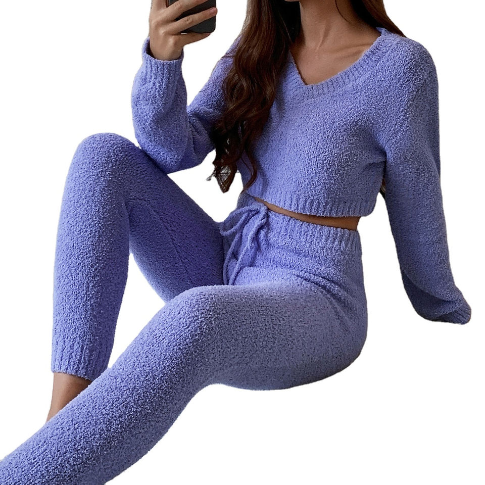 High Quality Women's Sweater Set Winter Fashion 2-Piece Set with Long Sleeve Crop Top and High Quality Teddy Fabric Legging 2026