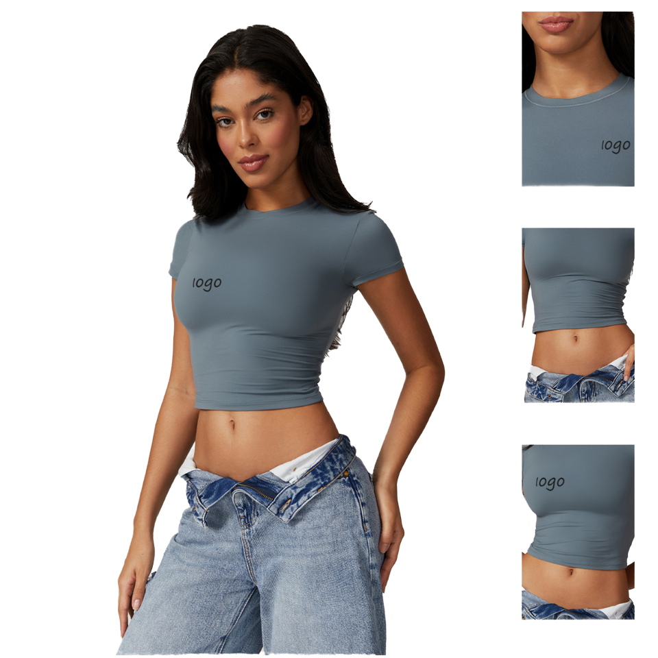 High Quality Women's U-Neck Printed Crop Top Breathable Summer Knitted T-Shirt Custom Logo Slim Fit Casual Short for Streetwear