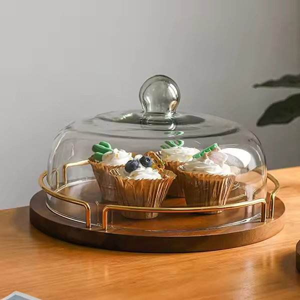 High Quality Wood Cake Stand With Glass Dome Cover Christmas Cup Cake Dessert Display Birthday Party Cake Tools