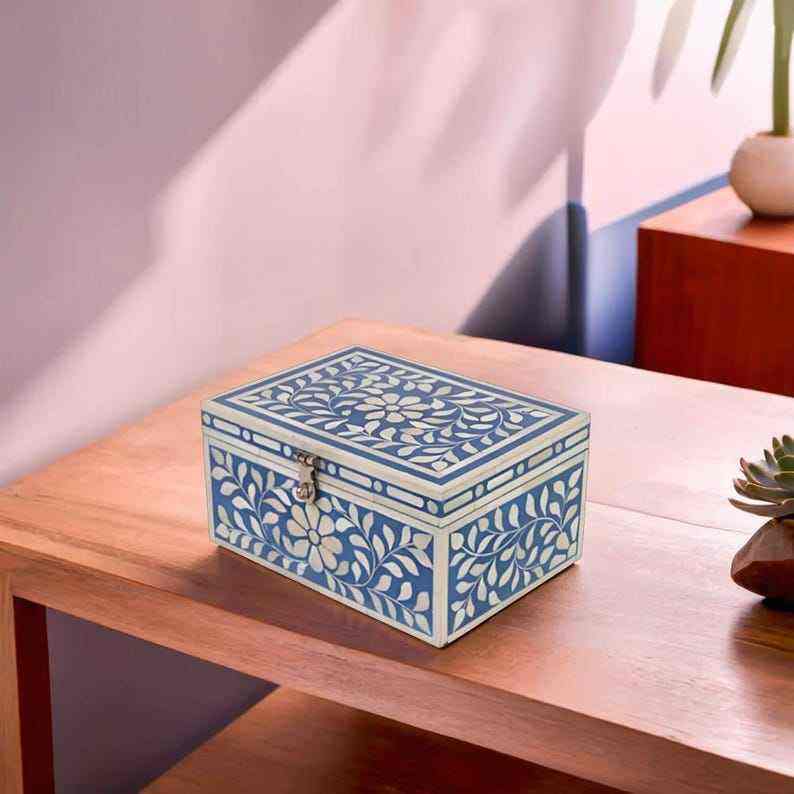 High Quality Wood Eco-Friendly Bone Inlay Jewelry Box with Custom Color & Gift Storage-Soft Interior for Delicate Items