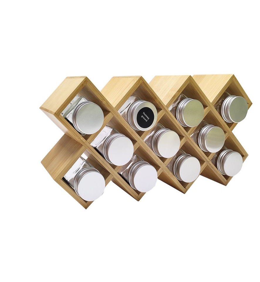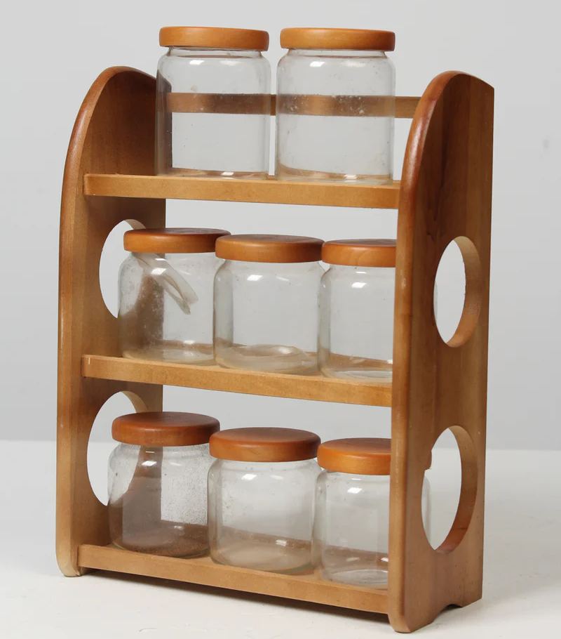 High Quality Wood Spice Jar Rack 9 Jars Holder 3 Tier Rack Acacia Wood Kitchen Spice Organizer Rack