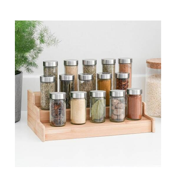 High Quality Wood Spice Jar Rack Factory Price Triangle Shape Wooden Spice Jars Rack Organizer Kitchen Used