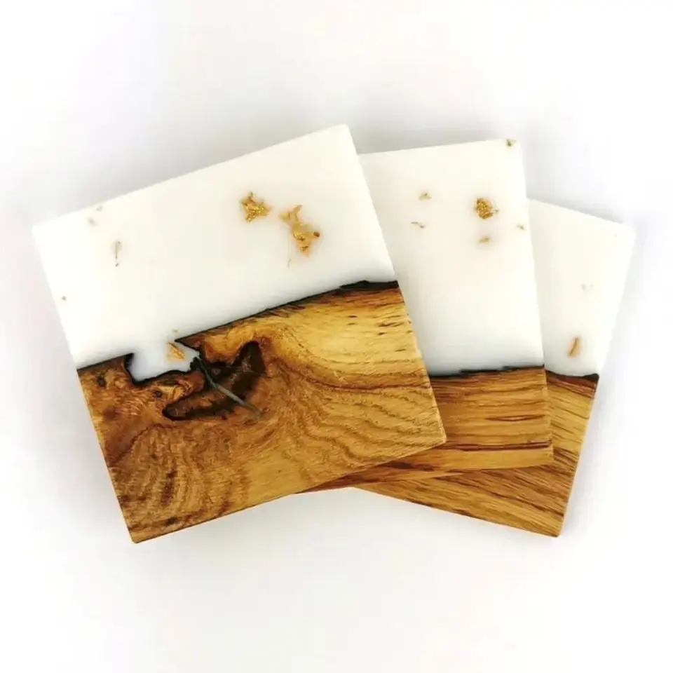 High Quality Wood and Resin coaster Modern Design for Coffee Shop and Tea Cup coaster with Shiny Polished Wooden Resin coaster