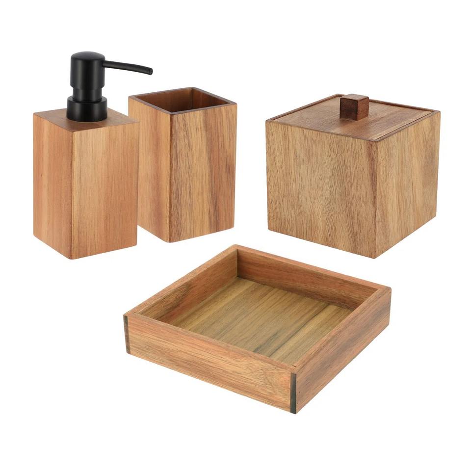High Quality Wooden Bathroom Set Great For Vanity Display Elegant Washroom Styling And Daily Hygiene Use From India