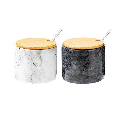 High Quality Wooden Box with Separate Spoon Salt and Spice Box Round Shaped for Kitchen Wooden Spice Container Sugar Bowl