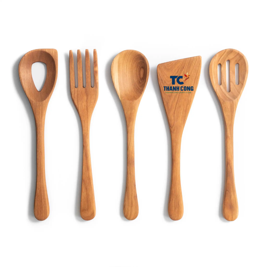High Quality Wooden Cooking Utensils Set Long Handle Wood Spoons Made in Vietnam Wholesale