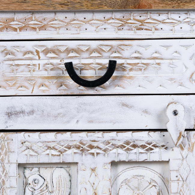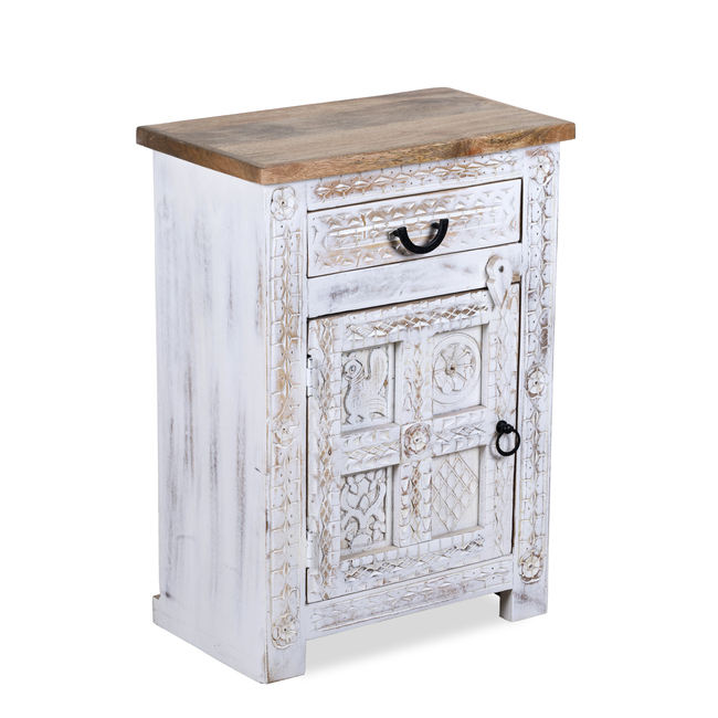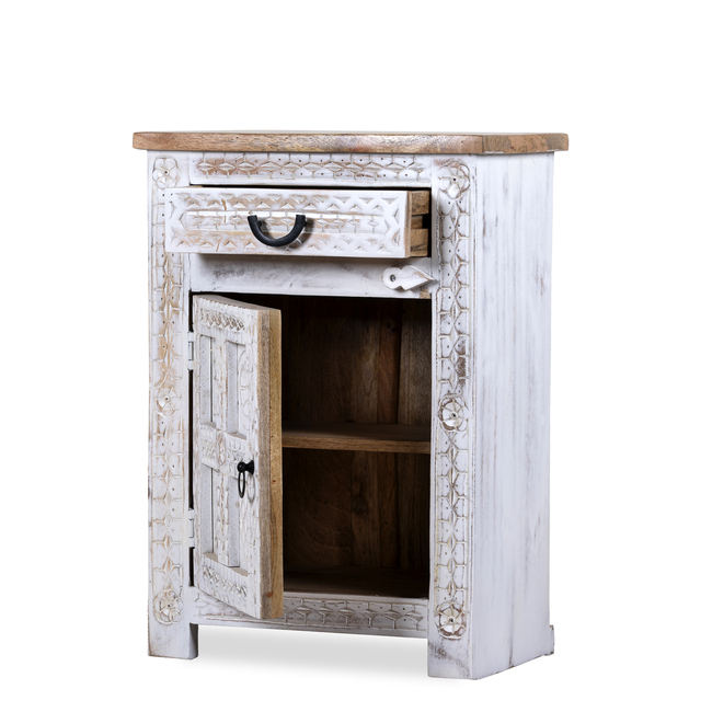 High Quality Traditional Wooden Hand Carved Bedside Nightstand Table White Modern Classic Bedroom Furniture India for Hospital