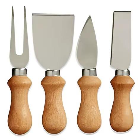 High Quality 3-Piece Wooden Handle Stainless Steel Blade Dishwasher Safe Cheese Knife Set Kraft World India Trending Item