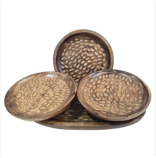 High Quality Wooden Serving Platter Set Handmade Round Oval Wooden Plate Fruit Veggies Serving Platter Trays for Decor Display