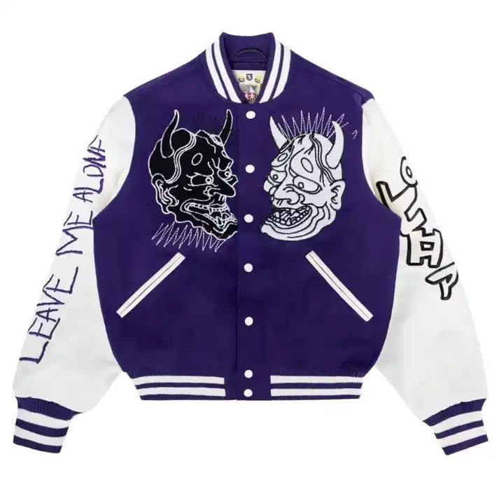 Men's High Quality Casual Varsity Jacket Polyester Sleeve Solid Purple Stand Hooded Collar Winter High Street Style Waterproof