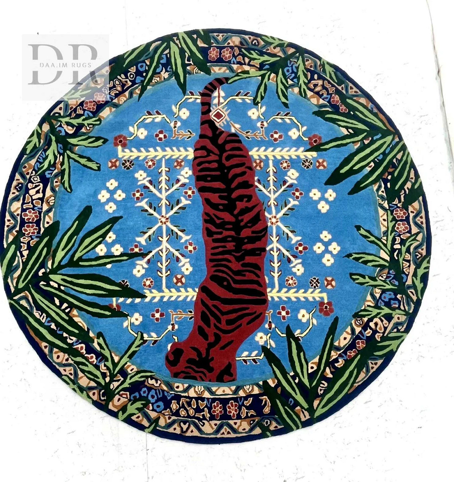 High Quality Wool Rug Bengal Tiger & Cheetah Pattern Botanical Design Animal Print round Pile for Door or Prayer Room Use