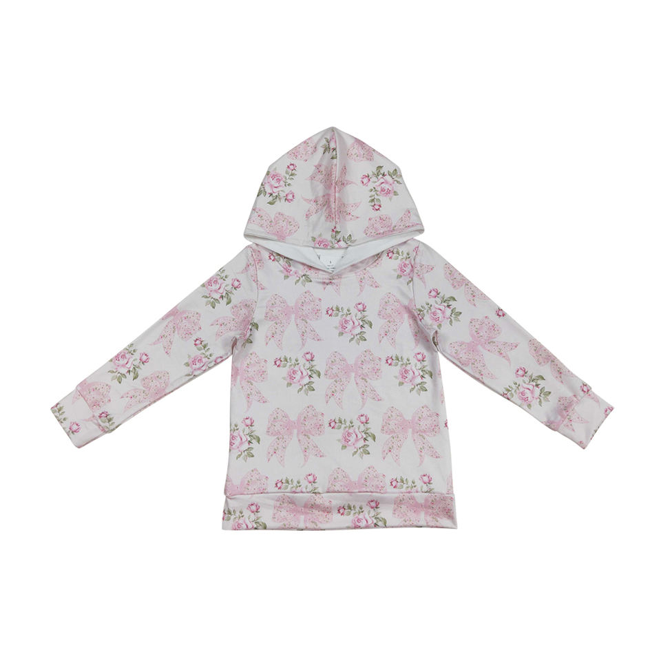 High Quality Yoga Pink Flowers Bows Hoodie Zipper Long Sleeve Coat Toddler Girls Clothes Boutique Wholesale Hot Sale New Arrival