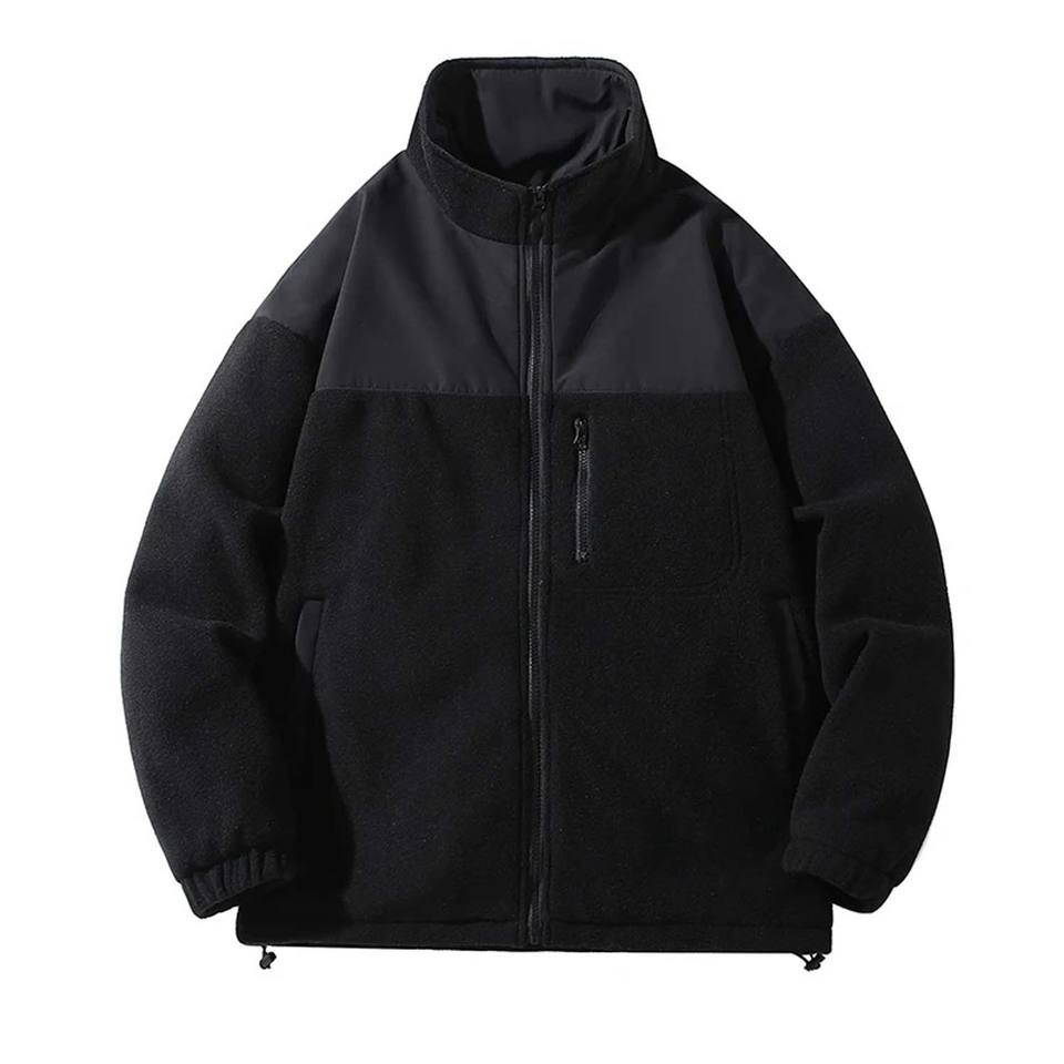High Quality Zipper Customized Winter Season Oversized Men Black Fleece Sherpa Jacket