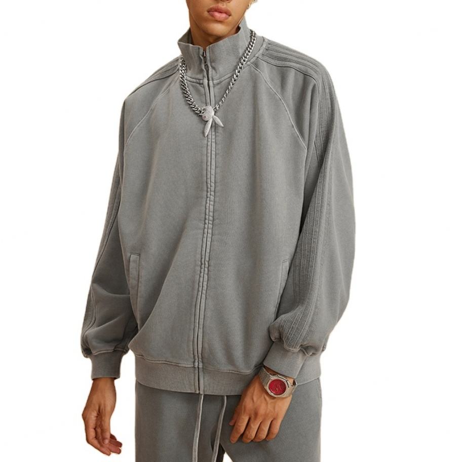 High Quality Zipper up Raglan Sleeve Unisex Jacket Manufacturers for Customs Clothes Heavy Weight Sunfaded Washed Jacket