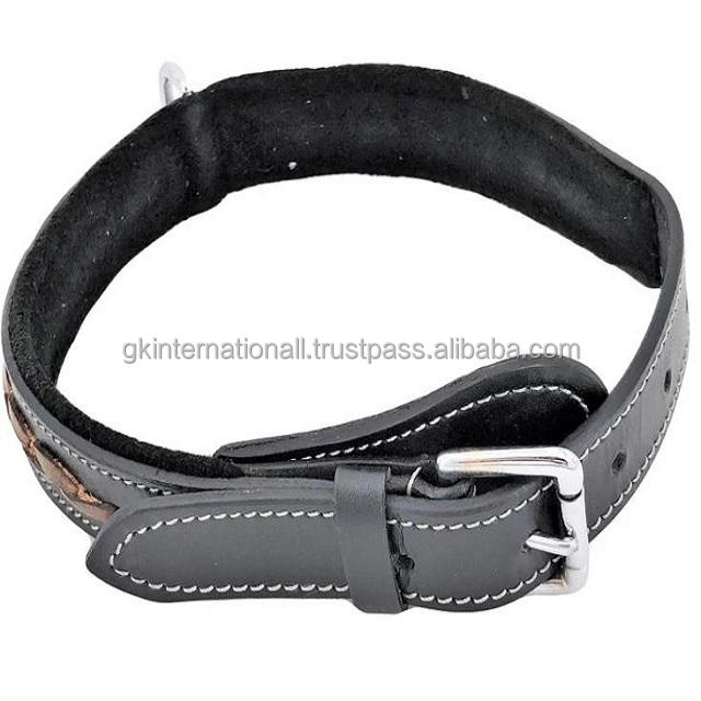 High Quality Dog Accessories Pet Supplies Hand Braided Design Black or Brown Padded Leather Dog Collar in All Custom Sizes