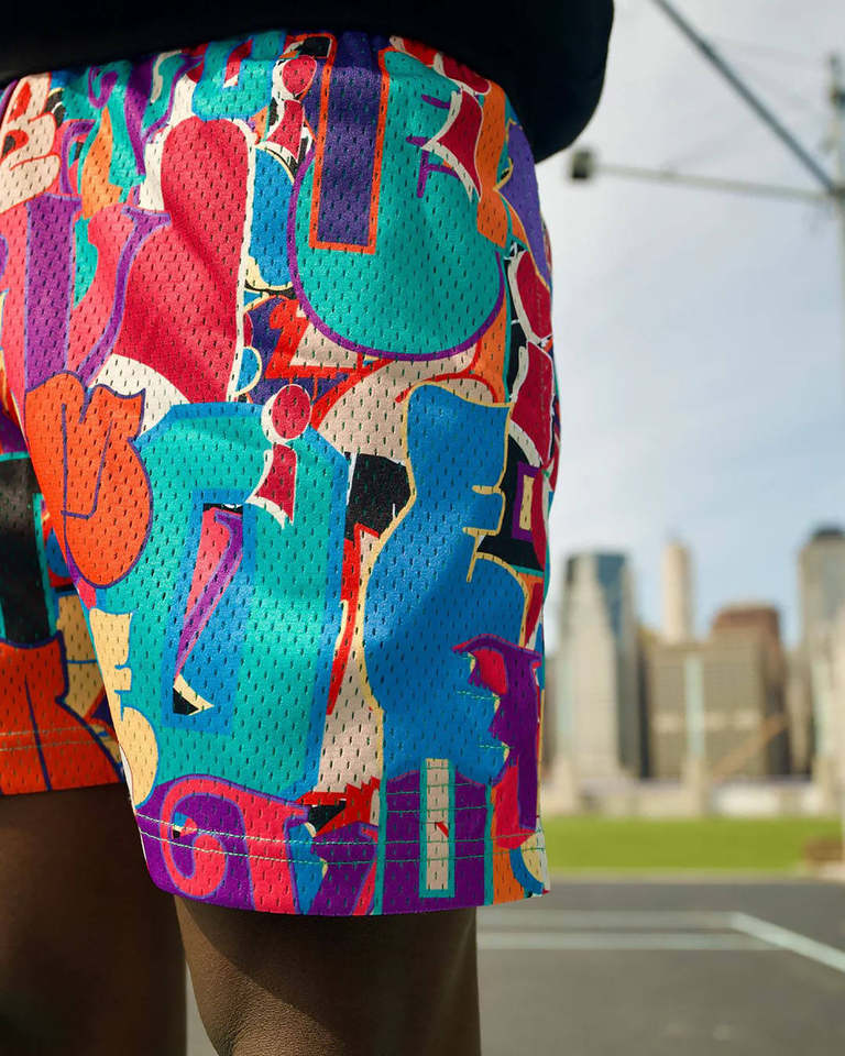 High Quality double layer 100% Polyester Skull Men's Shorts Sublimated Knee 5 Inch Inseam Full Graphic Print Custom Mesh Shorts