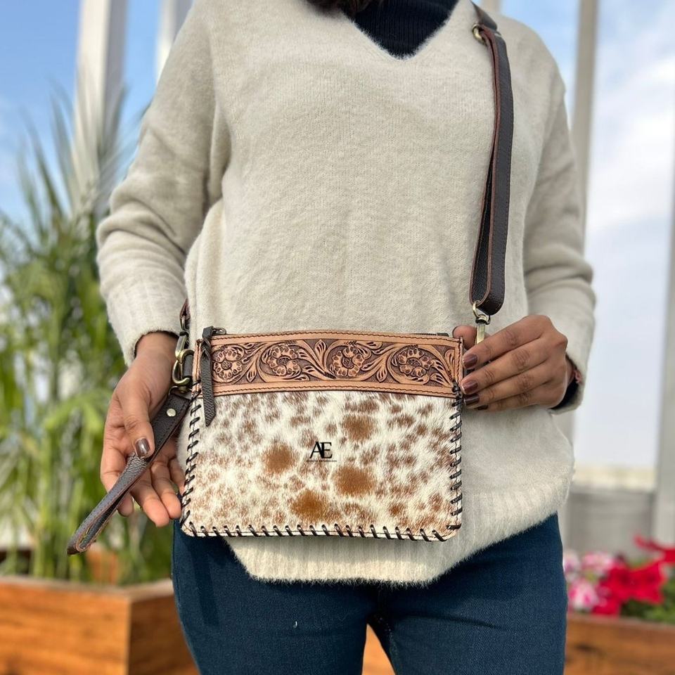 Tooled Leather Sling Bag