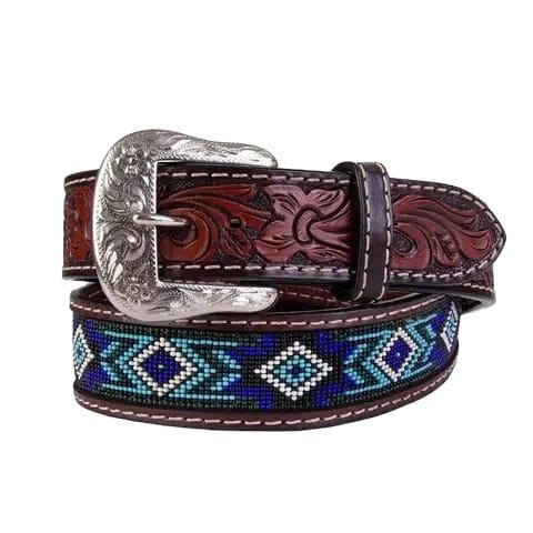 High Quality Western Leather Beaded Belt Tooled and Curved Floral at Best Price