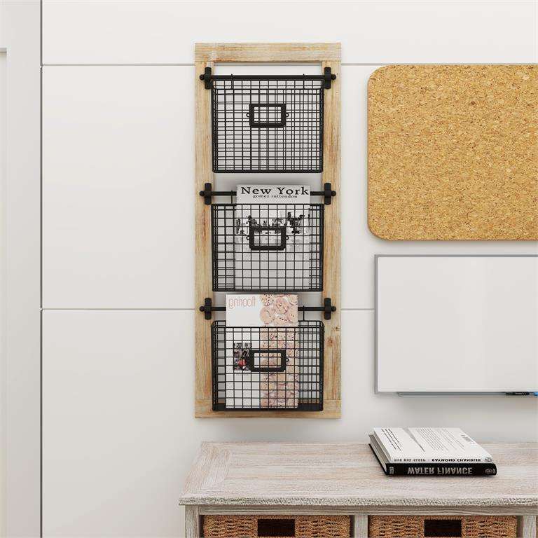 High Quality 14\" X 4\" X 36\" Black Metal Wire Magazine Rack Holder 3 Slot Suspended Baskets Label Slots Lacquer for Home Use