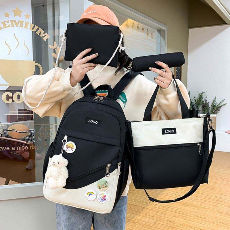 High Quantity Schoolbags Set, 4 Pieces in 1 Back Bags Canvas Girls Backpack Sets/