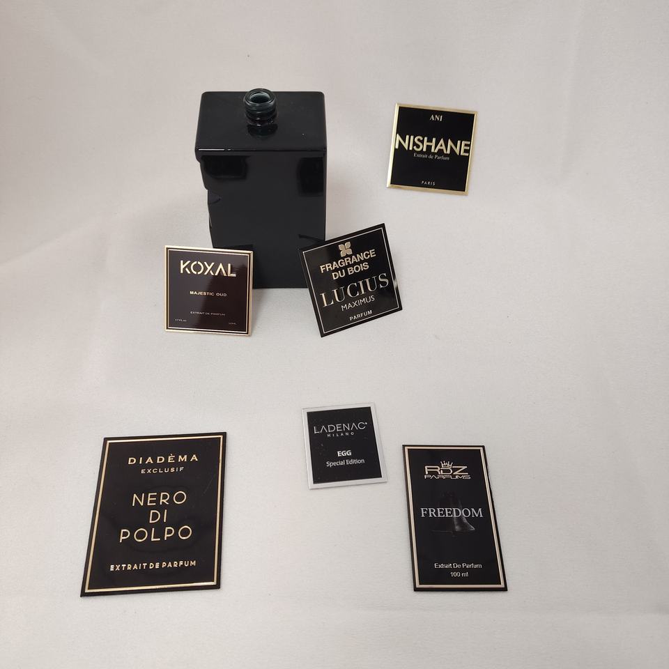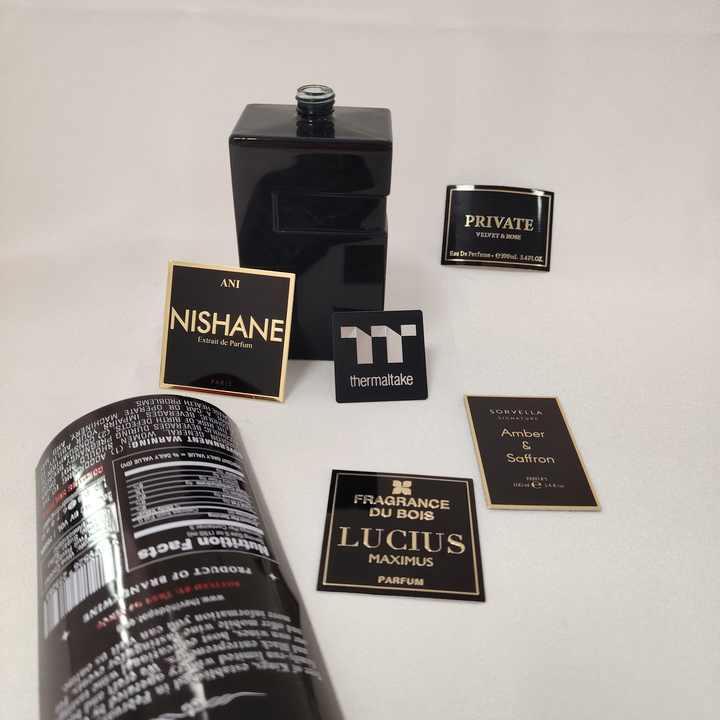 High Ranking Aluminum Metallic Brand Label for Perfume Bottle Body Concave Convex Logo Embossed Finish Candle Package Printing