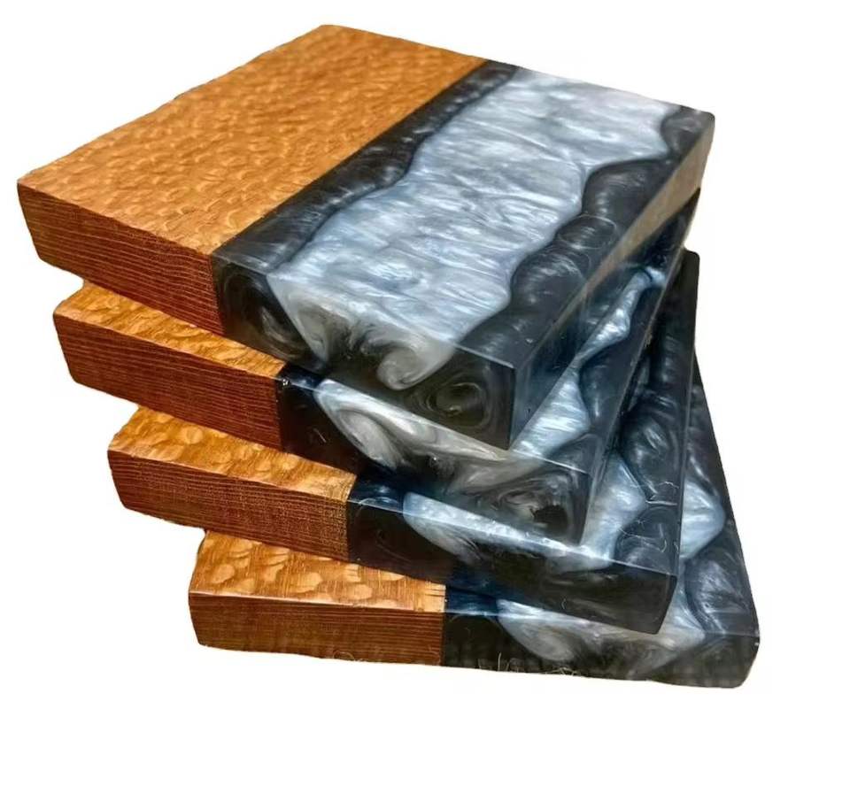 High Rated Superb Quality Eco-Friendly Customizable Resin & Wood Unique Handmade Tea Coaster 4 Pieces Set at Sale From India