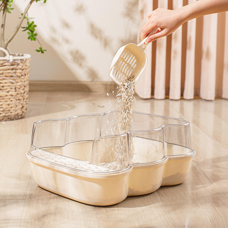High Rim Cat Litter Box With Scoop Large Capacity Easy Clean Dust Free Odor Control Rectangle PP Material
